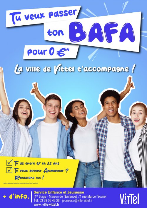- Travailler 3 semaines (rémunérées) au sein des accueils de mineurs organisés par la Ville de Vittel après l'obtention du BAFA complet